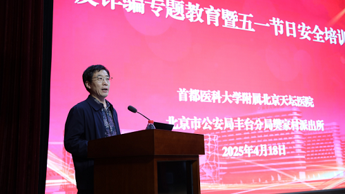 为加强反电信网络诈骗宣传教育,提高医院员工对各类电信网络诈骗方式的防范意识和识别能力,2025年4月18日,反诈骗主题教育暨五一节日安全培训会在忠诚楼召开。本次会议由北京天坛医院、北京市公安局丰台分局樊家村派出所联合举办。